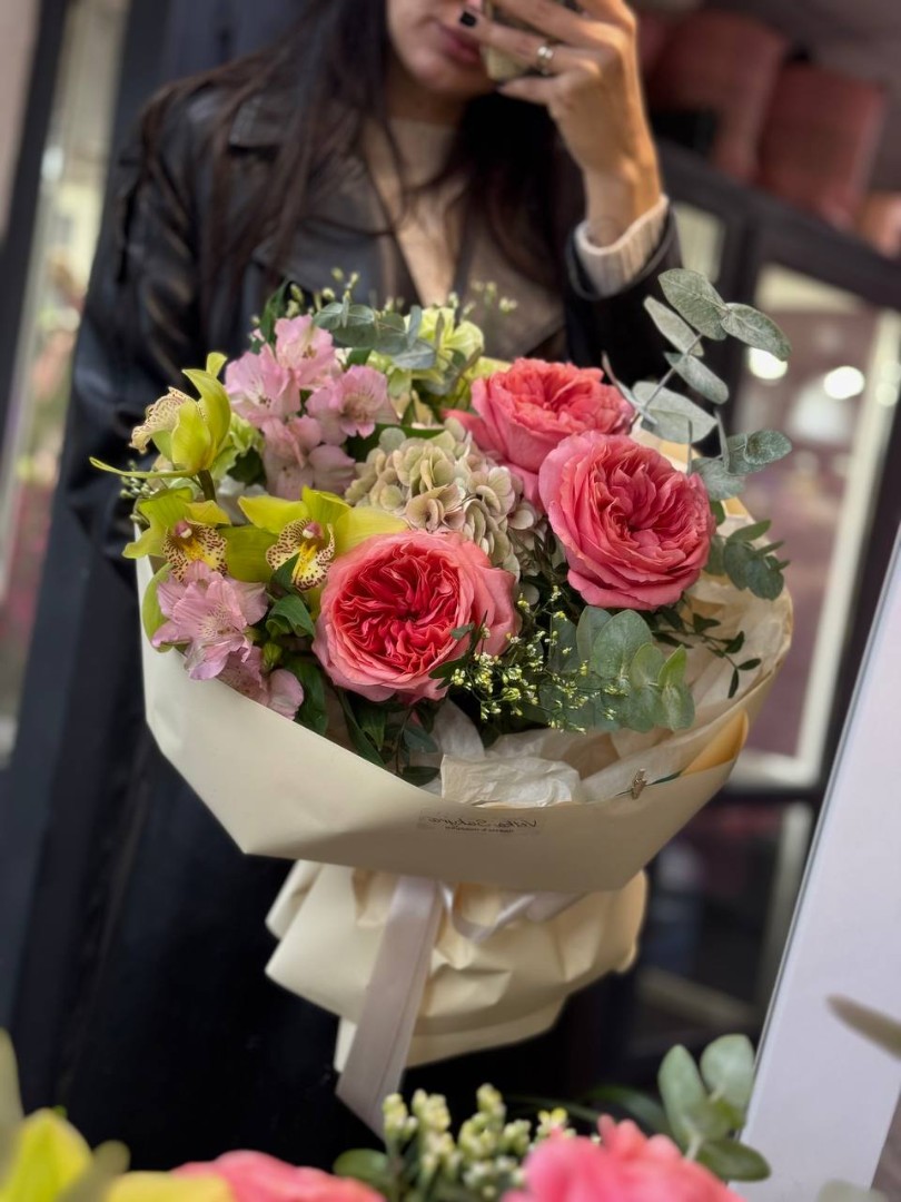 Обращаем Ваше внимание, фото носит иллюстрационный характер, состав букета может отличаться в зависимости от цветов в наличии. Но мы сделаем букет максимально похожим по стилю, форме и цветовой гамме не нарушая общей концепции. Перед доставкой администратор вышлет для Вас фото готового букета.